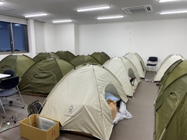 能登地域への派遣期間中は、石川県の現地JA施設内にテントを設営し、全国から参集したJAグループ職員とともにLPガス供給先の点検を行いました。