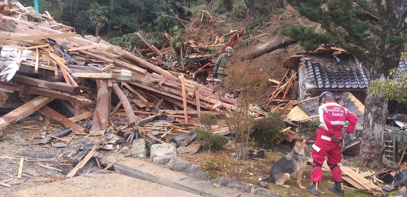 令和6年能登半島地震発生後、日本捜索救助犬協会の皆様が現地にて救助活動を行われました。