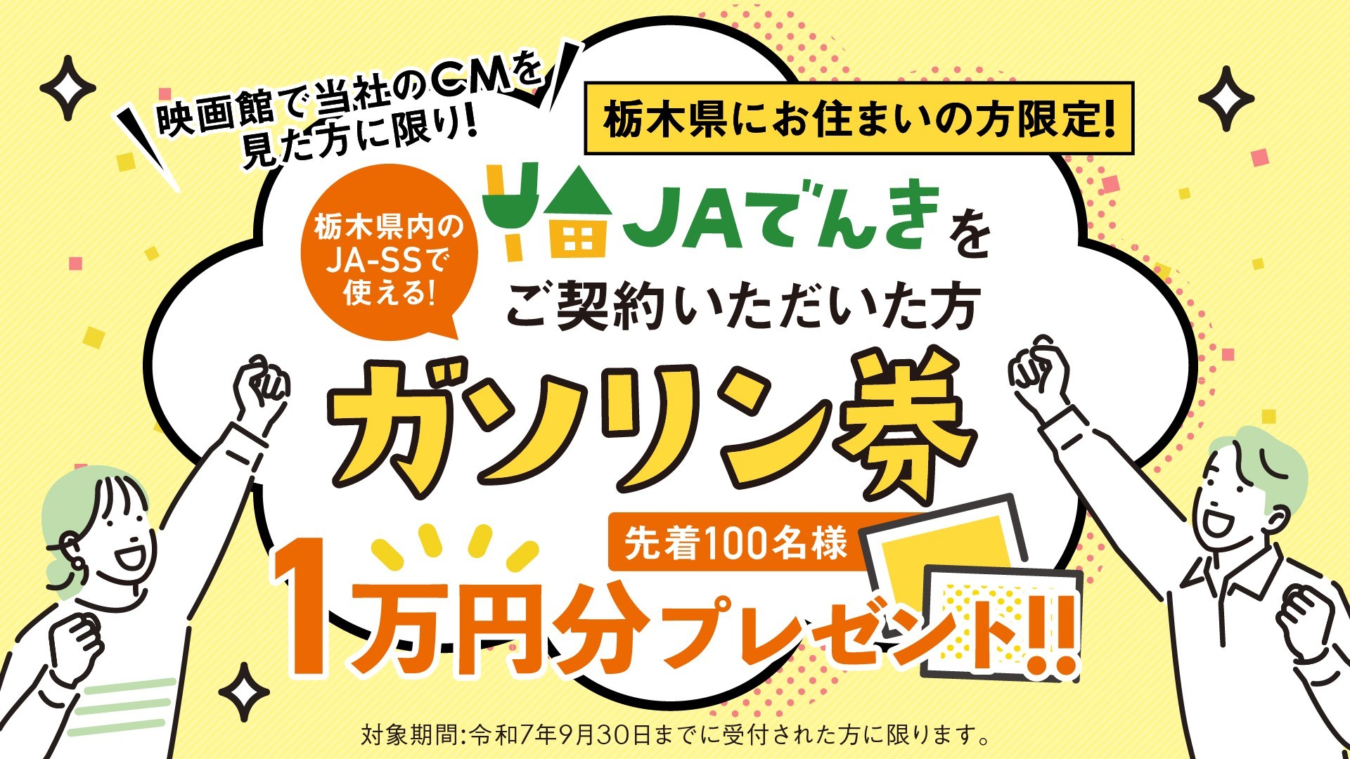上記①、②の条件を満たした方、先着100名様に栃木県内のじゃすぽーとSSで使えるガソリン券1万円分をプレゼント!