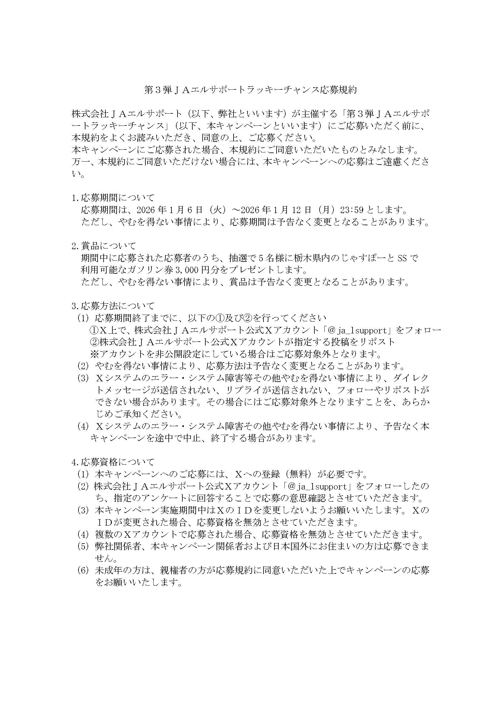 この度、当社公式Xにて「第3弾JAエルサポートラッキーチャンス 」を開催いたします!