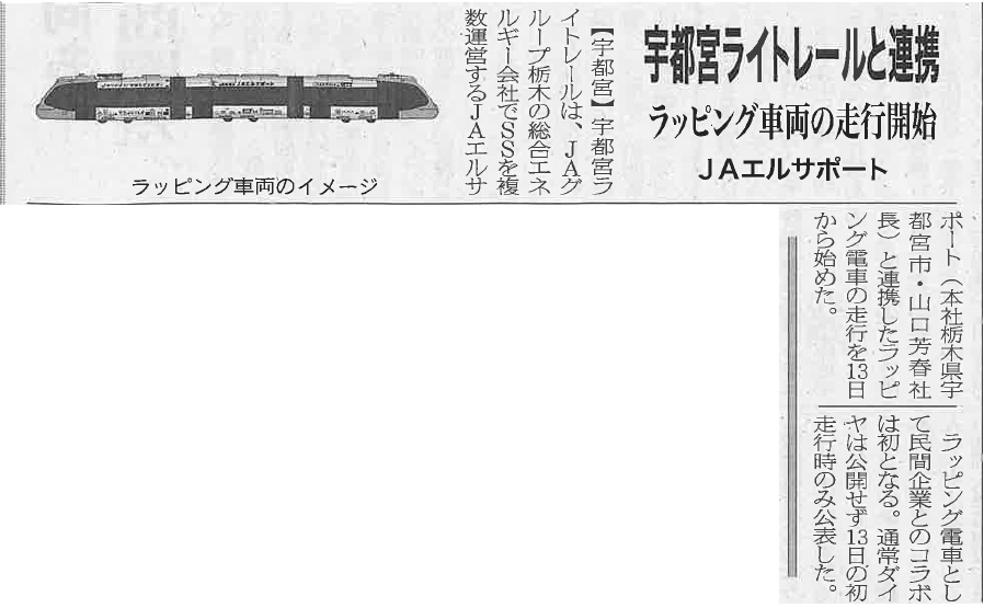 当社JAエルサポートラッピングLRT運行開始についての記事が
