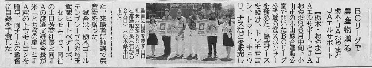 日本農業新聞「JAエルサポート・JAおやまプレゼンツ栃木ゴールデンブレーブス冠試合」の記事掲載について