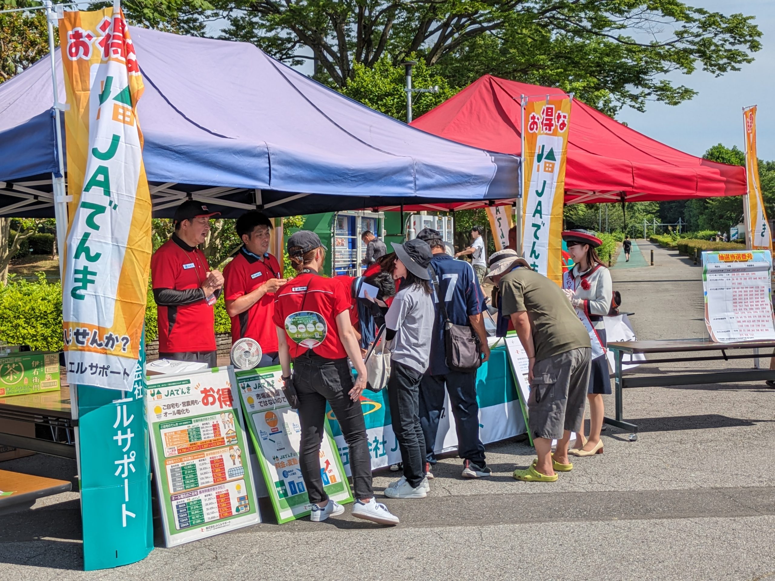 現地では、入場者に対しノベルティの配布を行いました。また、「抽選会」や「JAでんき相談会」、「JAエルサポート公式Xキャンペーン」、「ラッピングEVバスの展示」、JAおやまによる「野菜販売」など様々なイベントを行いました!