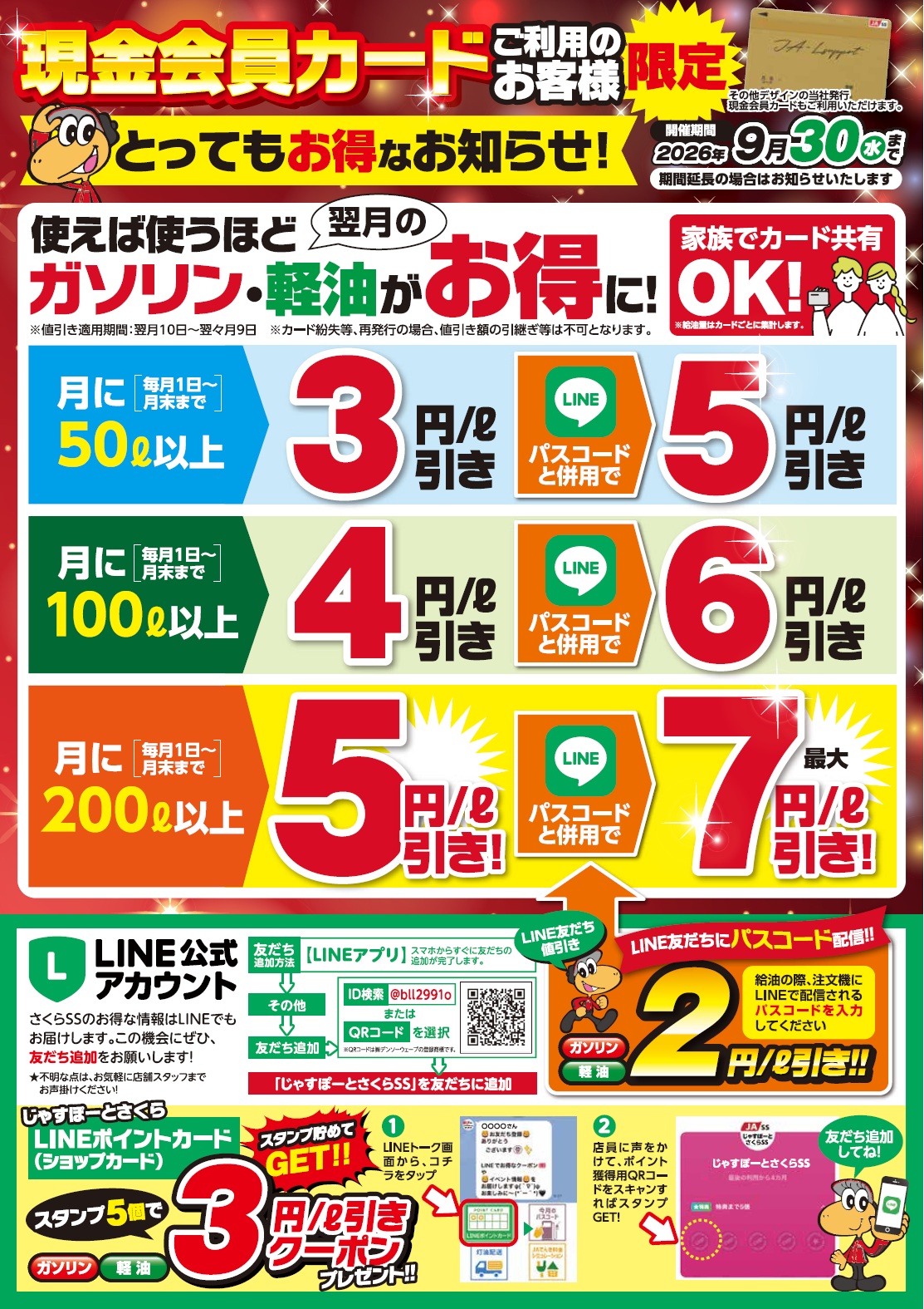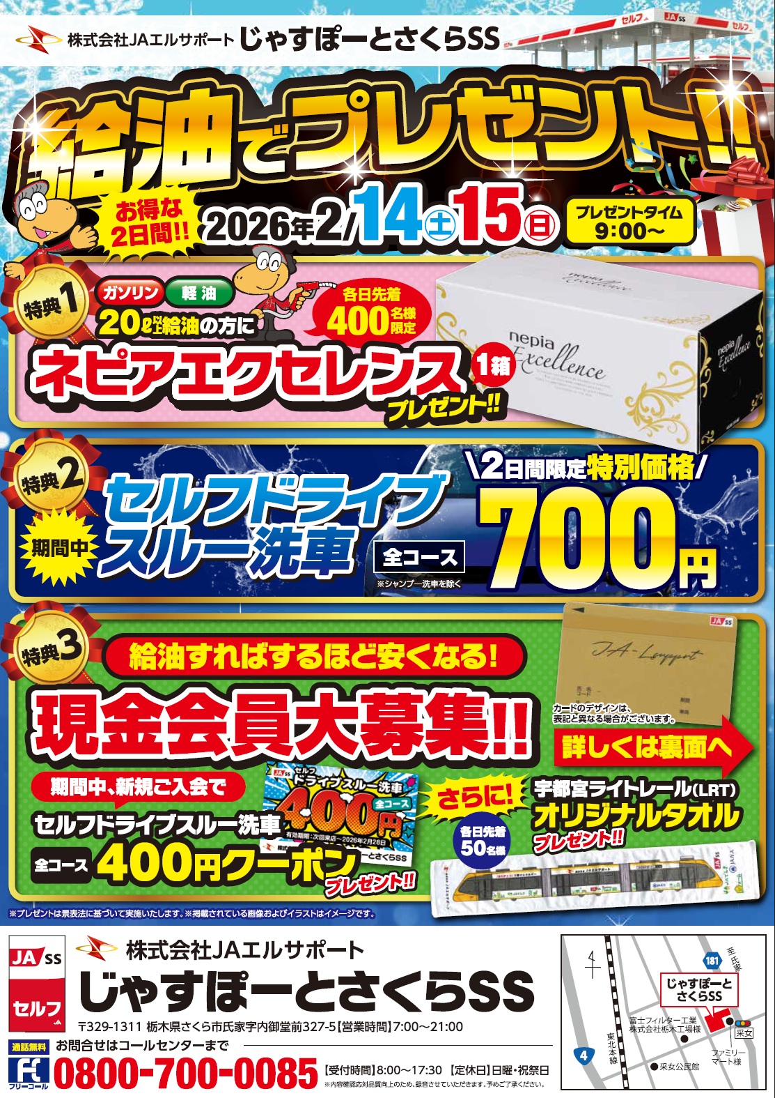 この度、じゃすぽーとさくらSSにて『給油でプレゼント!!』キャンペーンを開催いたします!