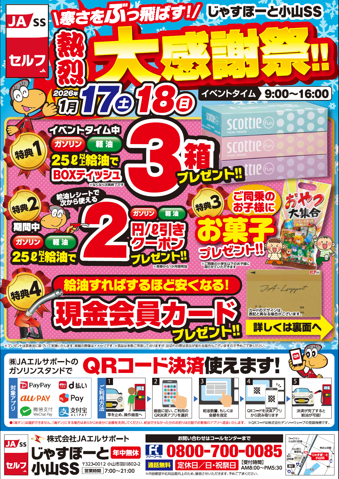 この度、じゃすぽーと小山SSにて「熱烈 大感謝祭!!」キャンペーンを開催いたします!