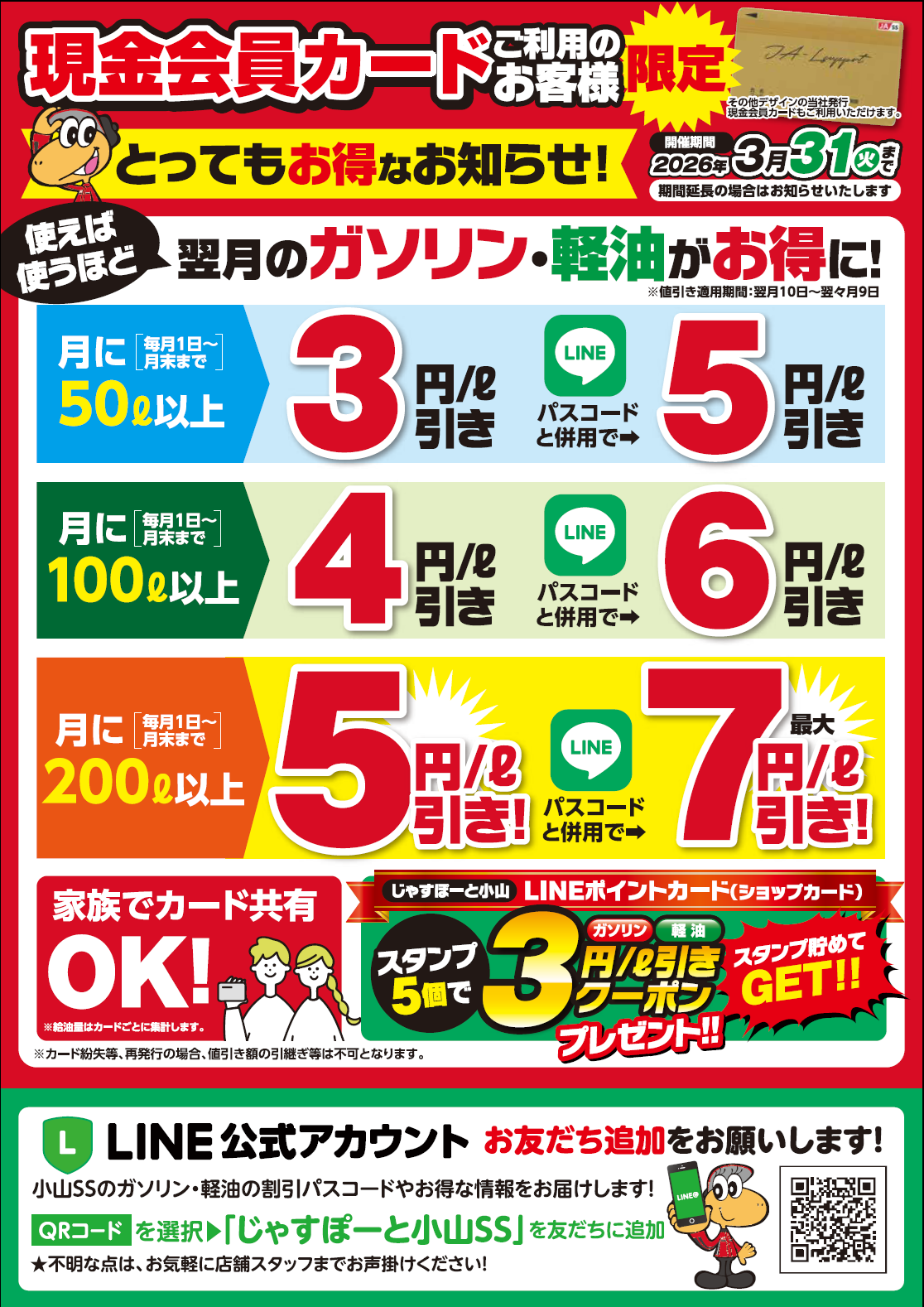 🎫 特典②:ガソリン・軽油25L以上給油で、次回使える《2円/L引きクーポン》プレゼント!